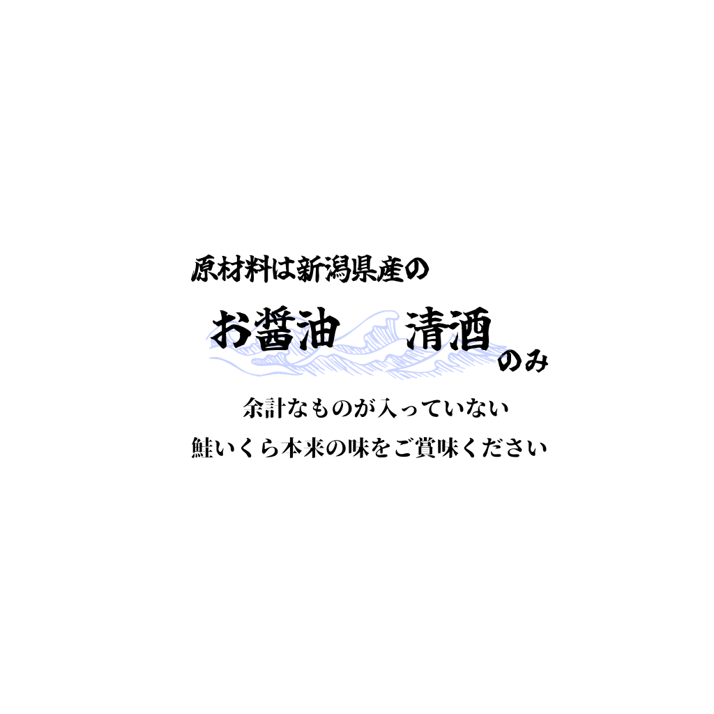 原材料は新潟県産のお醤油と清酒のみ、余計なものが入っていない、鮭いくら本来の味をお楽しみいただけます。みんなが笑顔になり、家族みんなでワクワクしながら、食卓を囲み”ちょっと贅沢な一品を食卓に、また”大切な人への”プレゼント”としてぜひをご賞味ください。